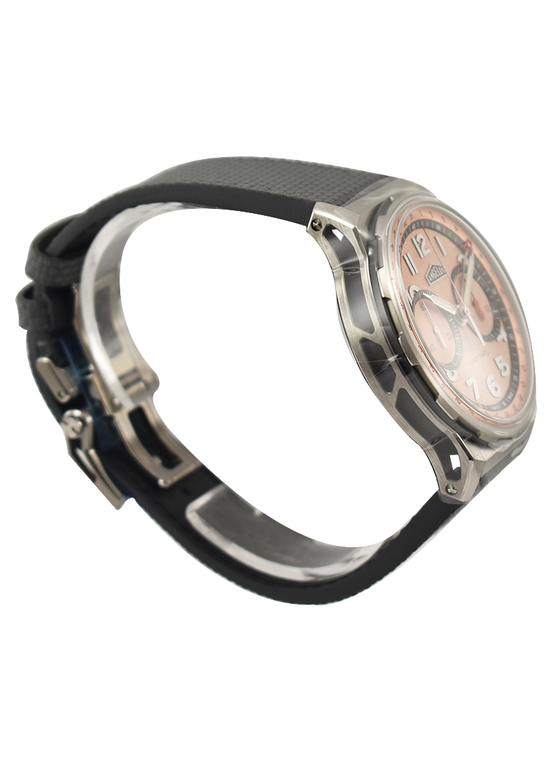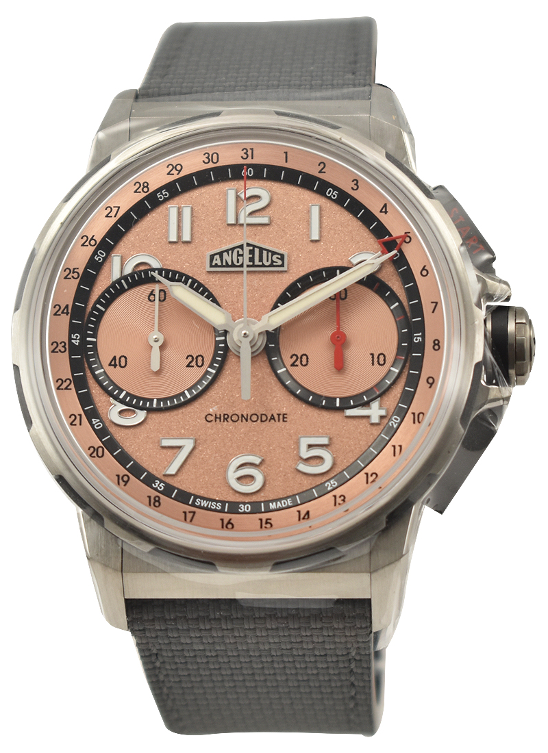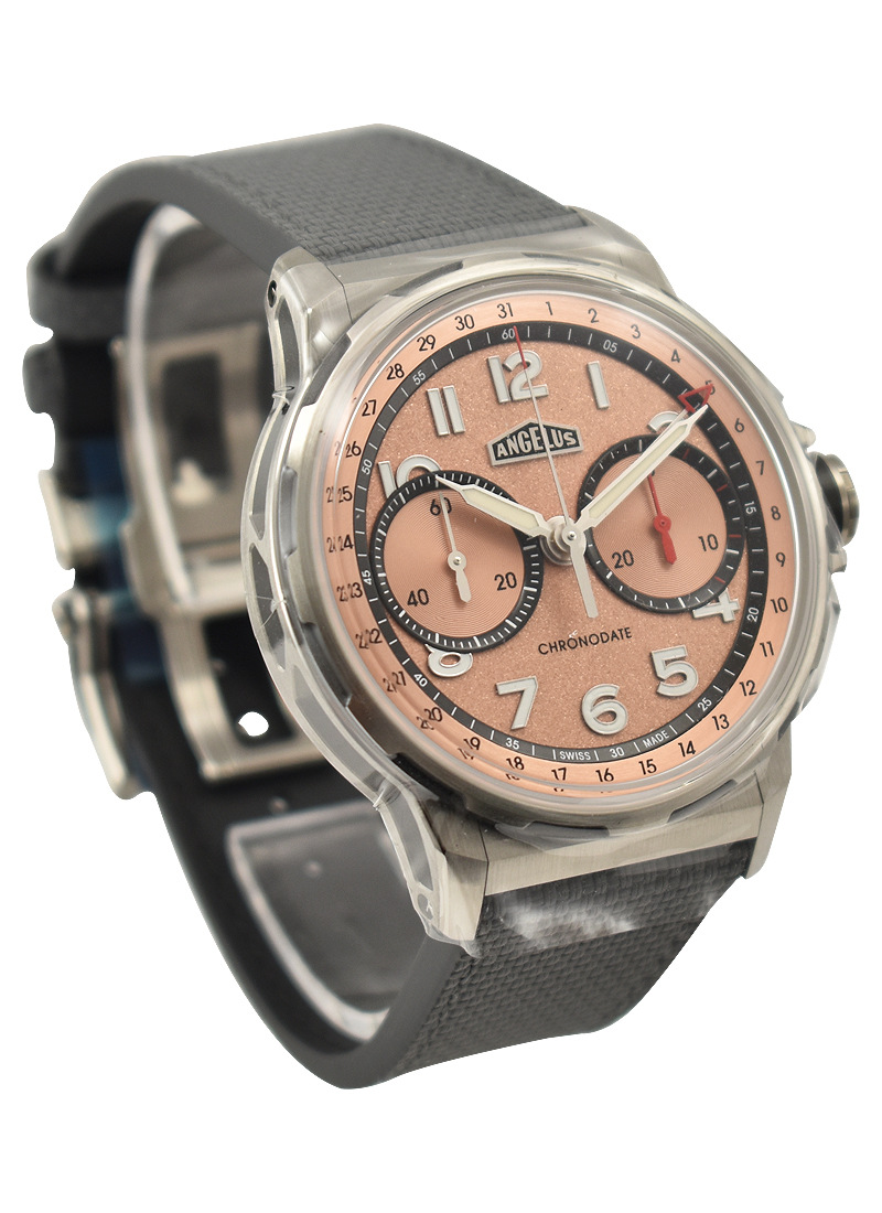 The Angelus Chronodate is a genuinely legendary name in watch history, having been introduced in 1942. Angelus could have easily produced an exact replica of this famous model, a 38mm chronograph with a rather retro aesthetic. Rather, they accomplished something far more noteworthy and thrilling: they put the new Chronodate in a sporty 42.5mm case and gave the historically inspired design a good dose of modern influence. The end product is a fascinating dynamic tension-filled watch.