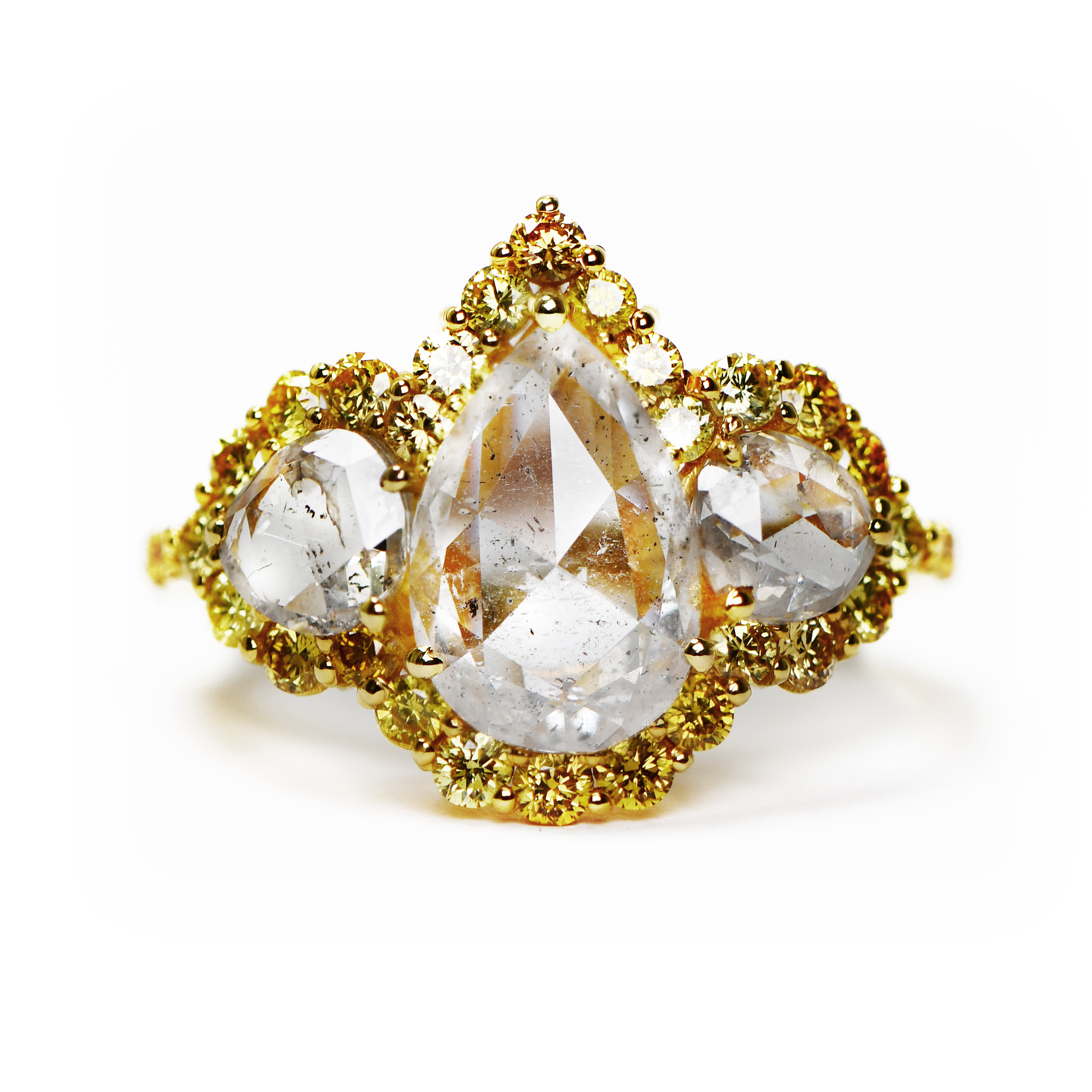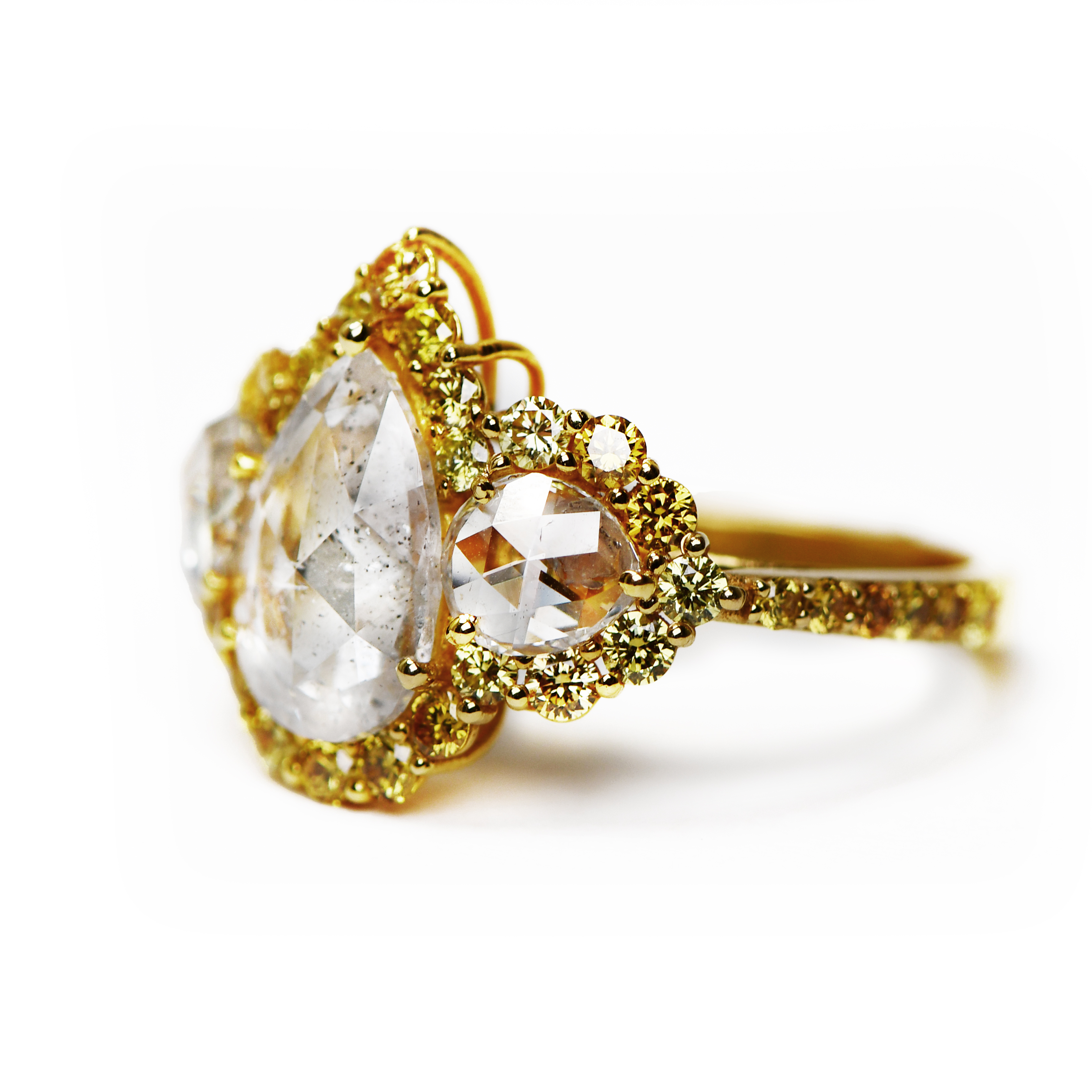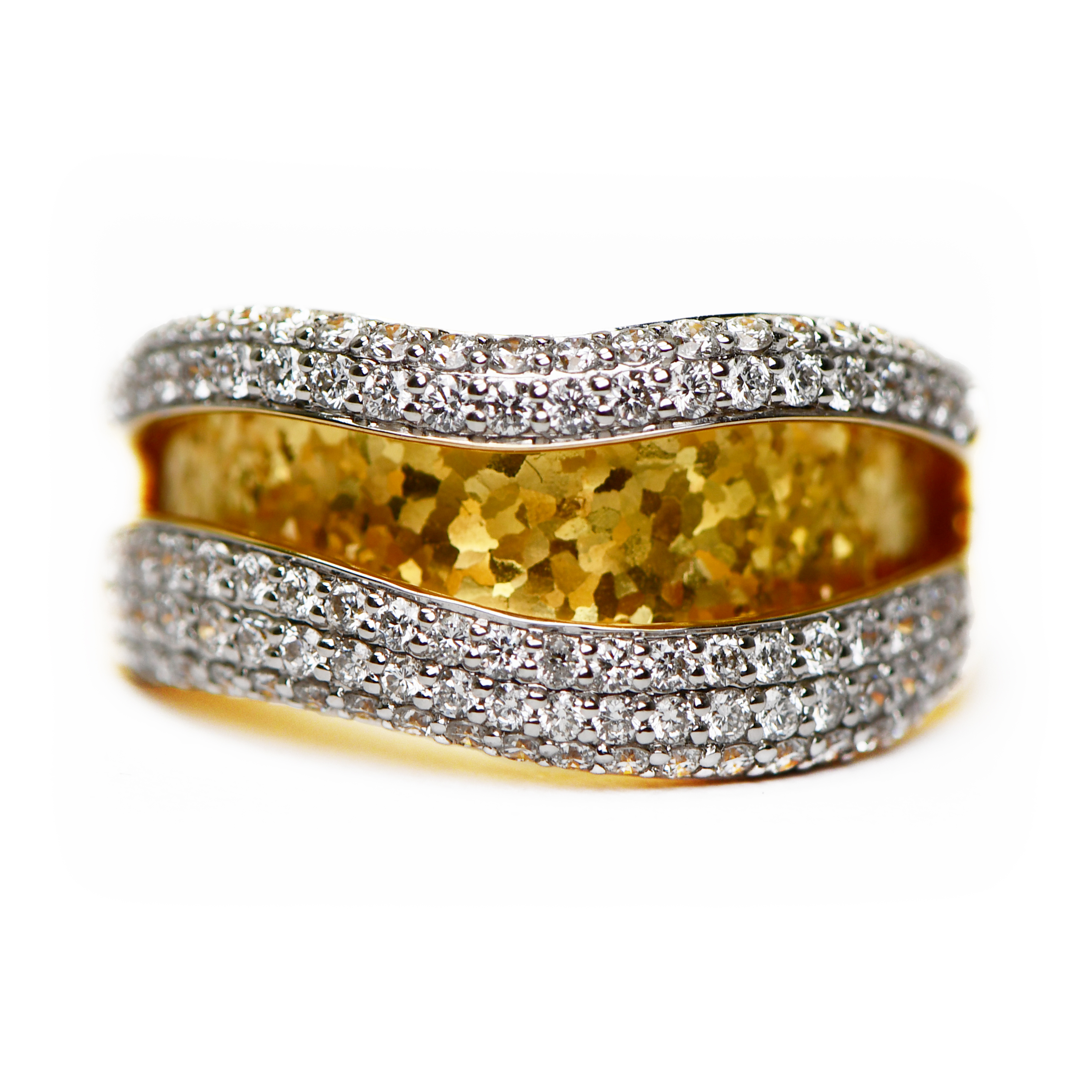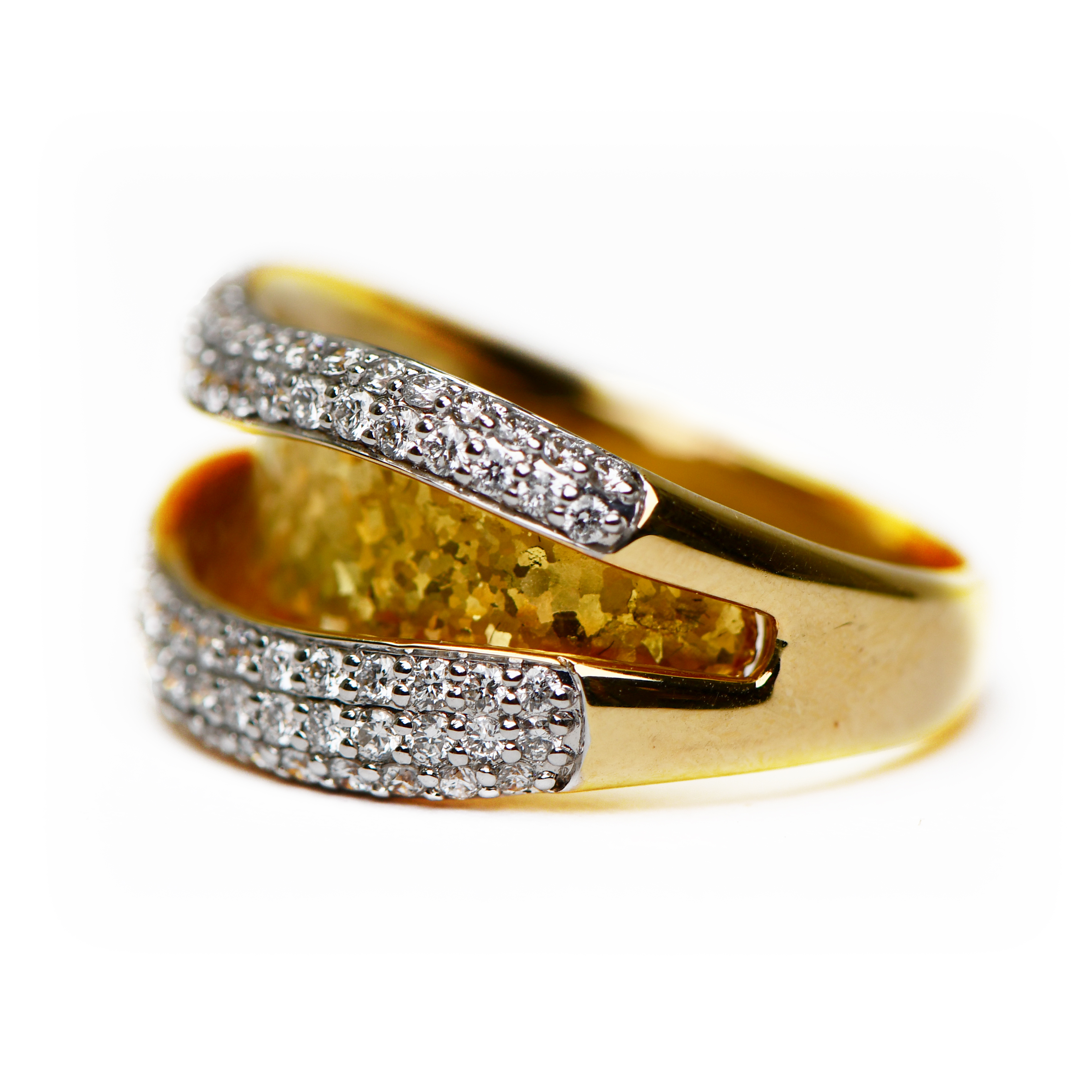 18k Satin Yellow Gold Pave Diamond Ring