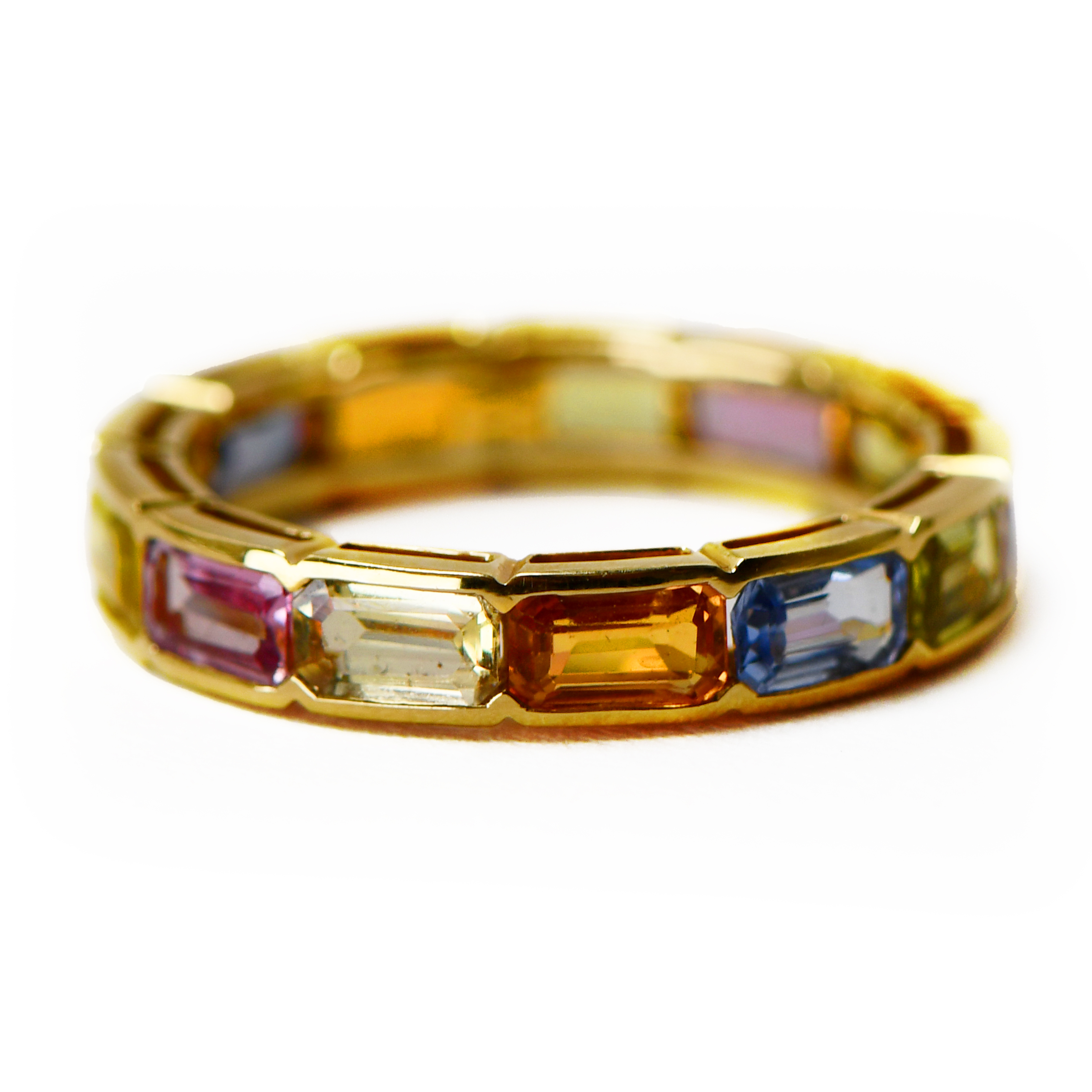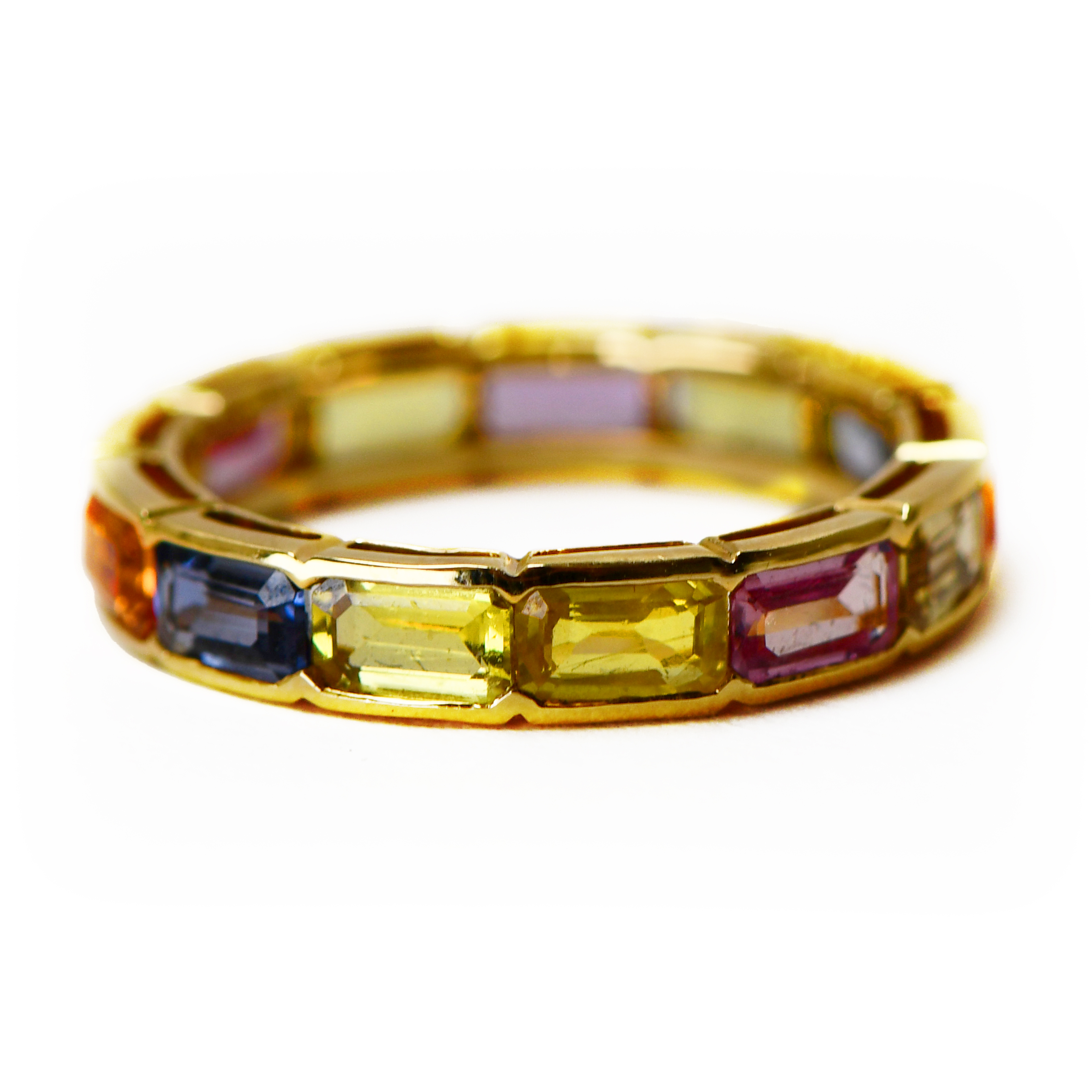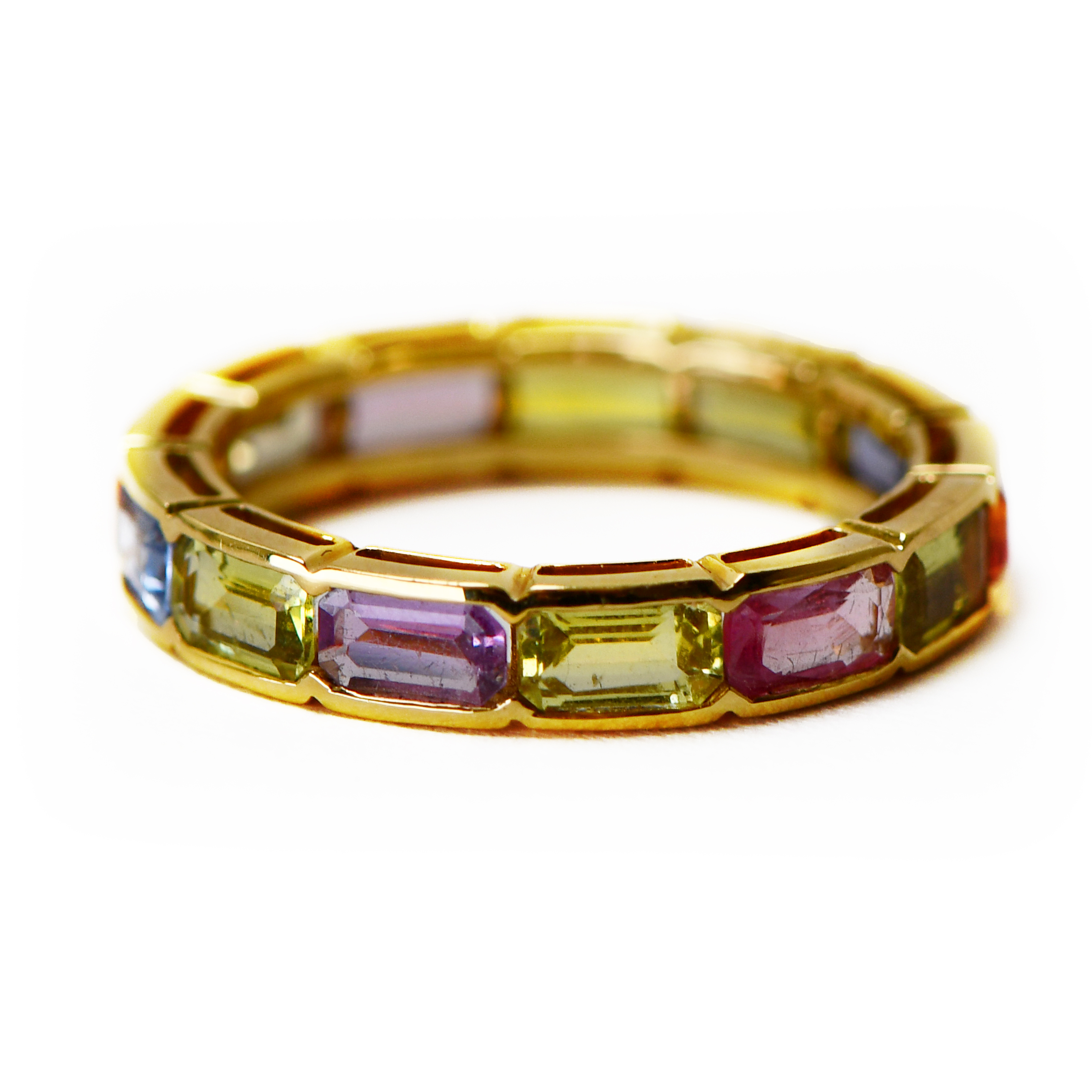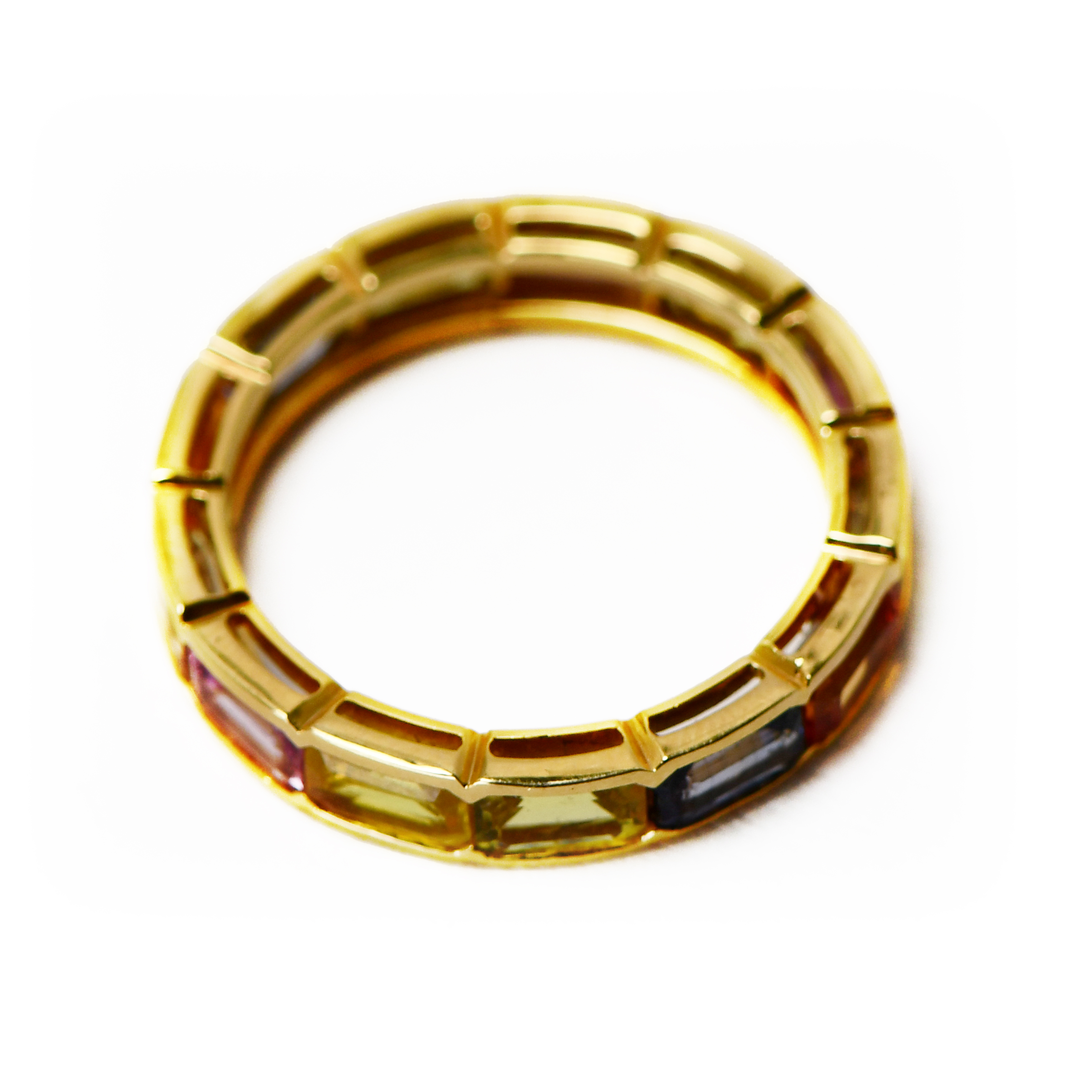 Radiating color and brilliance, this exquisite bracelet showcases 68.67 carats of natural colored sapphires, each hand-selected for its exceptional hue and clarity. Set in 18K white gold, the vibrant sapphires are beautifully complemented by approximately 208 fine white diamonds, totaling around 6.5 carats, adding a dazzling halo of light to every movement. A true statement of luxury and craftsmanship, this bracelet is a timeless celebration of color, sparkle, and sophistication.