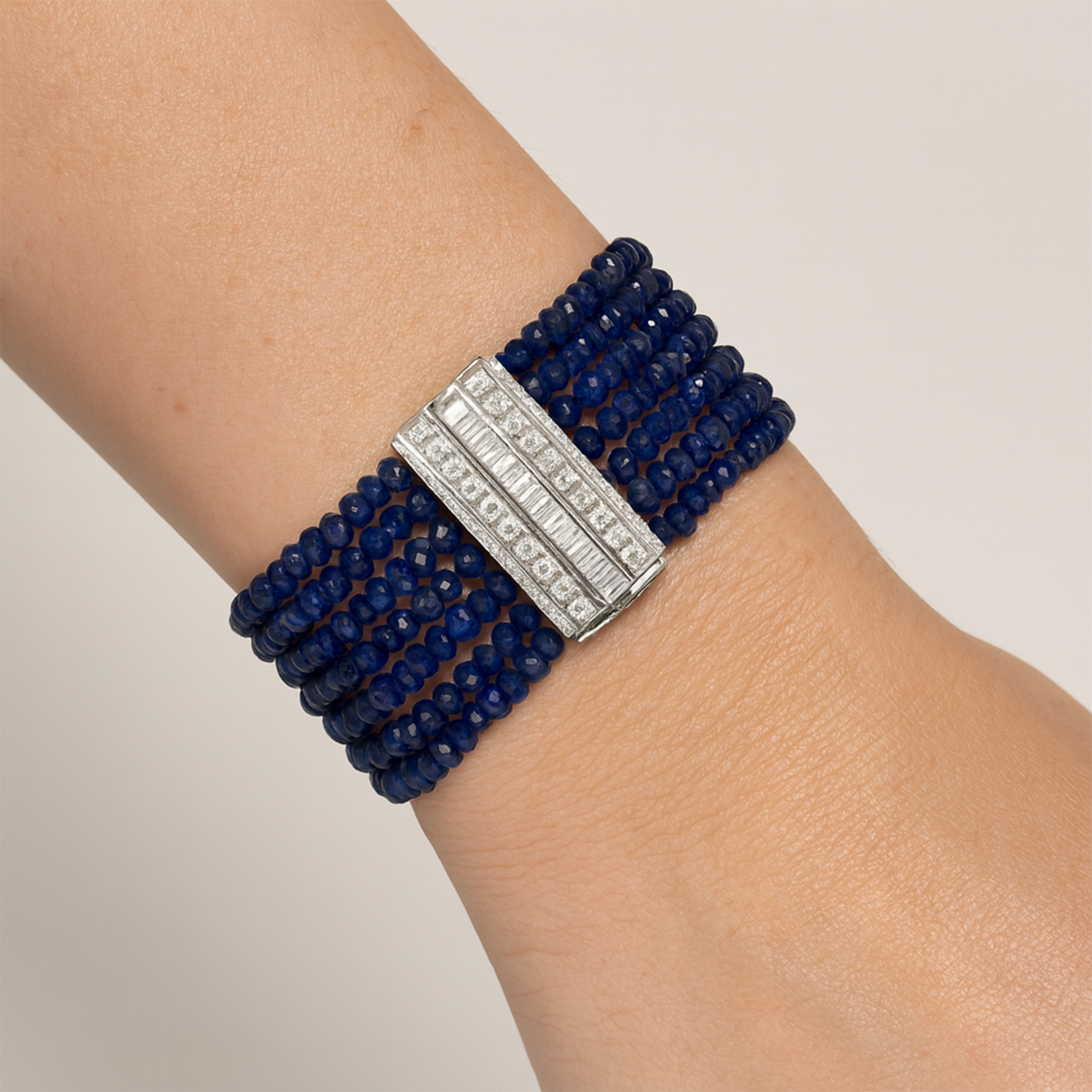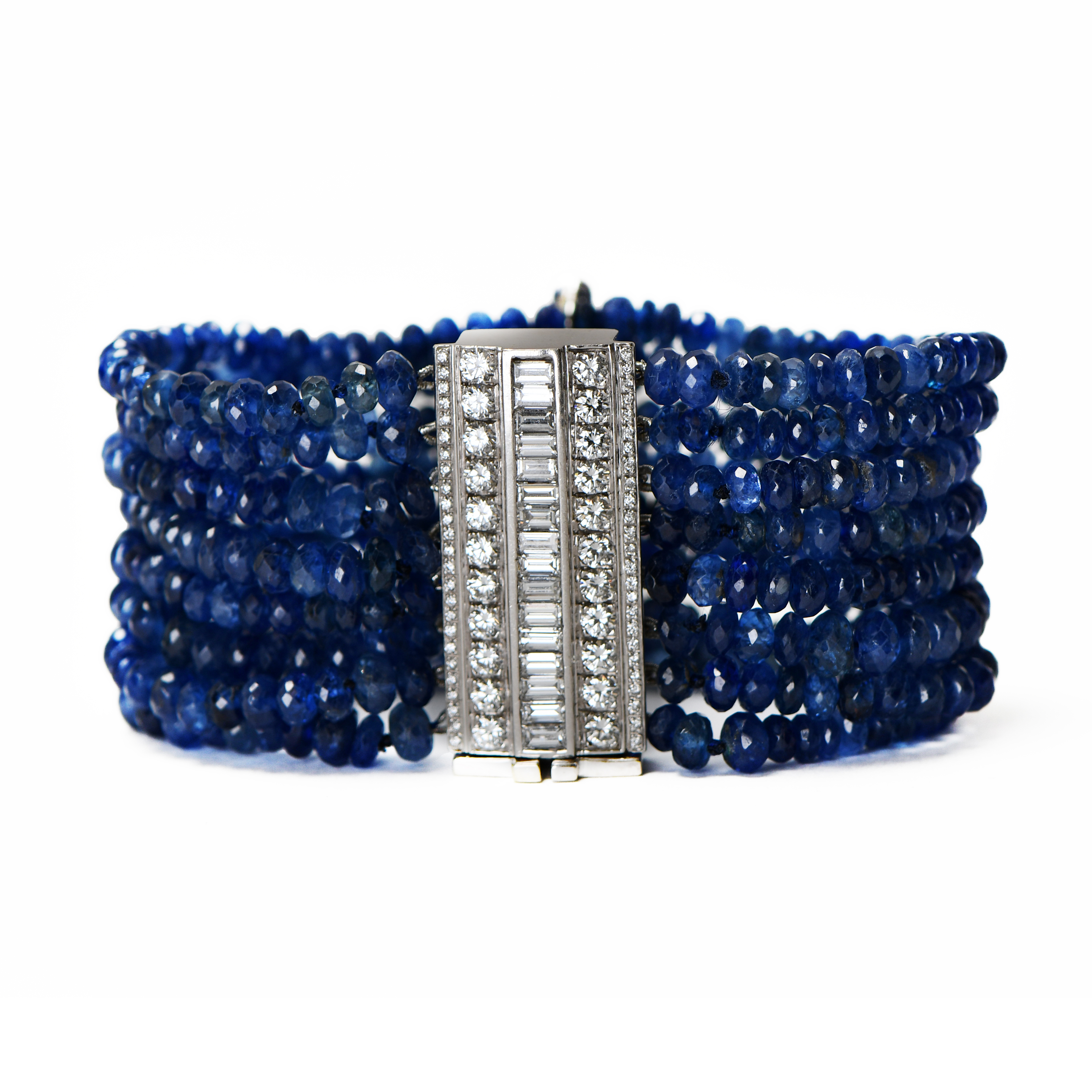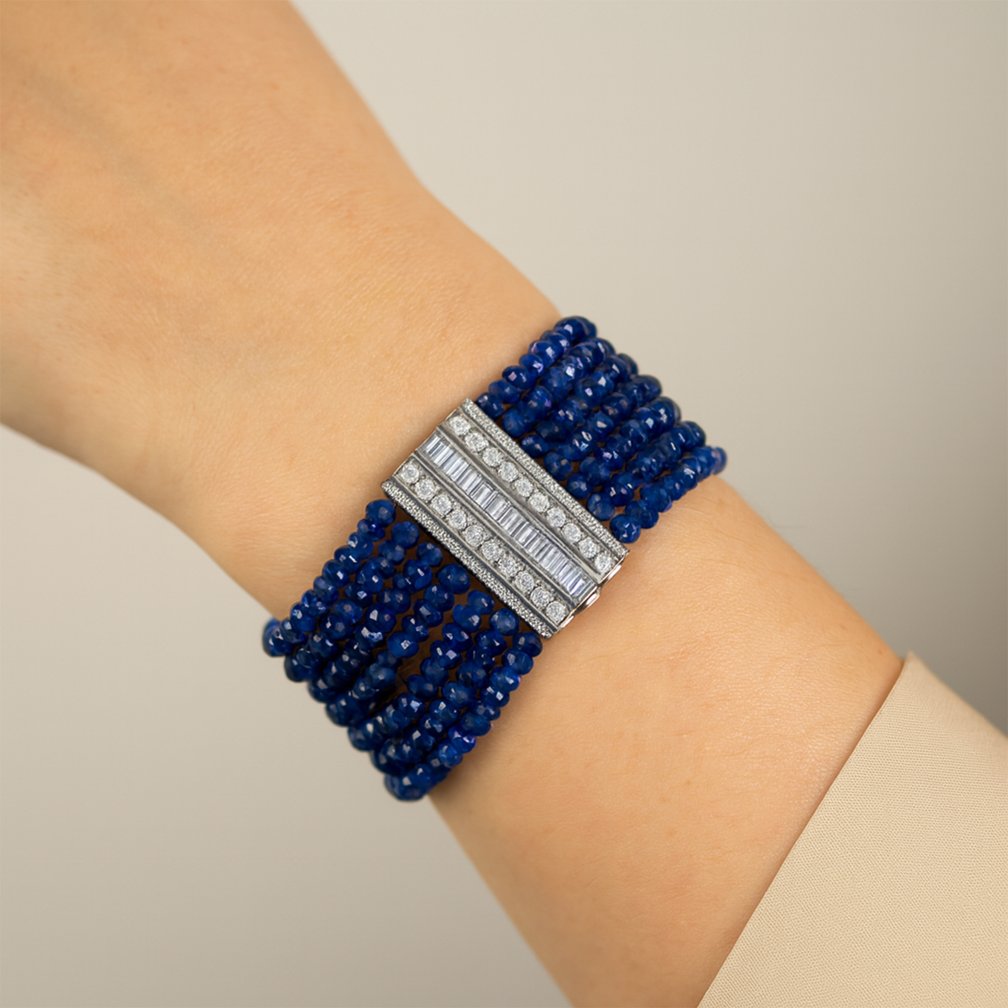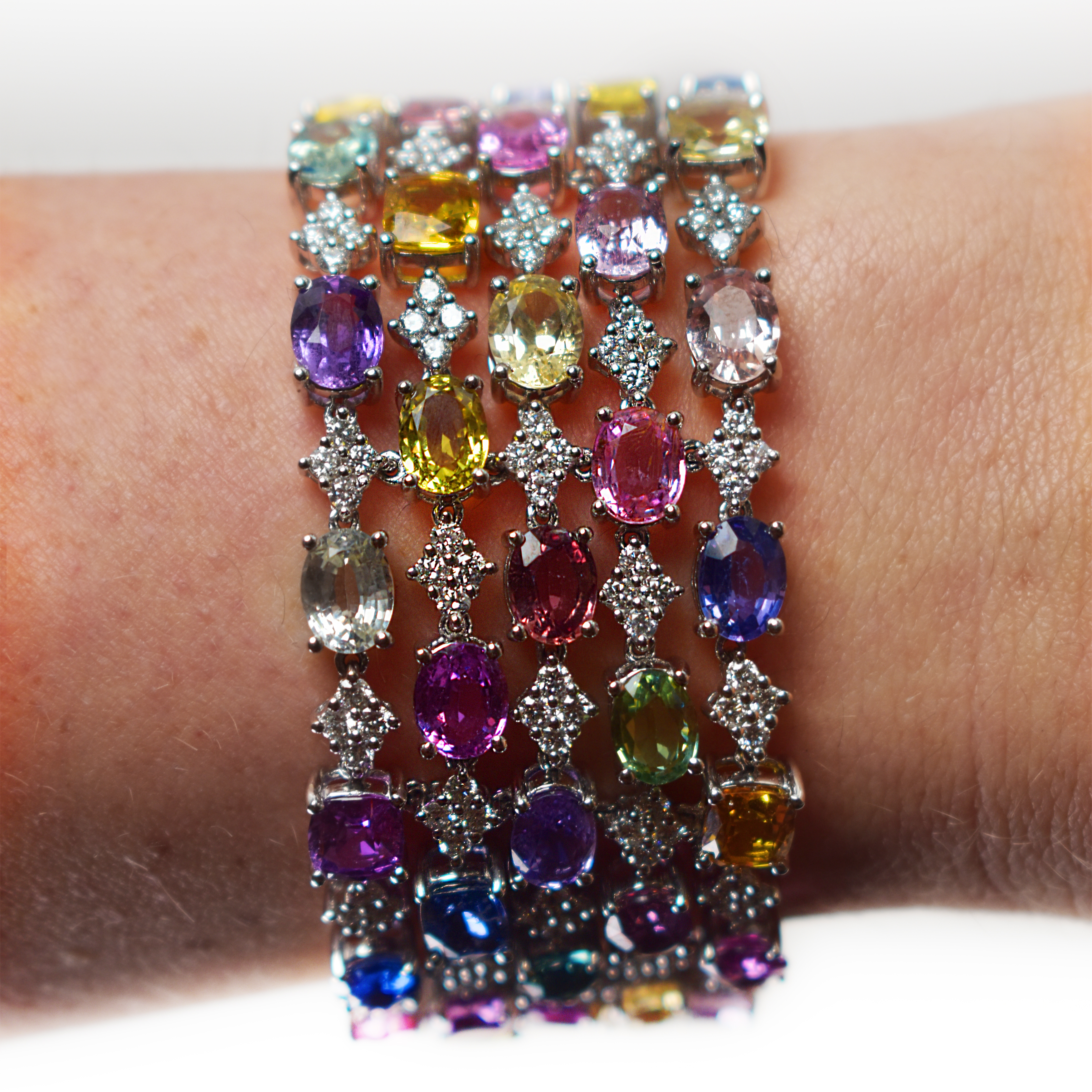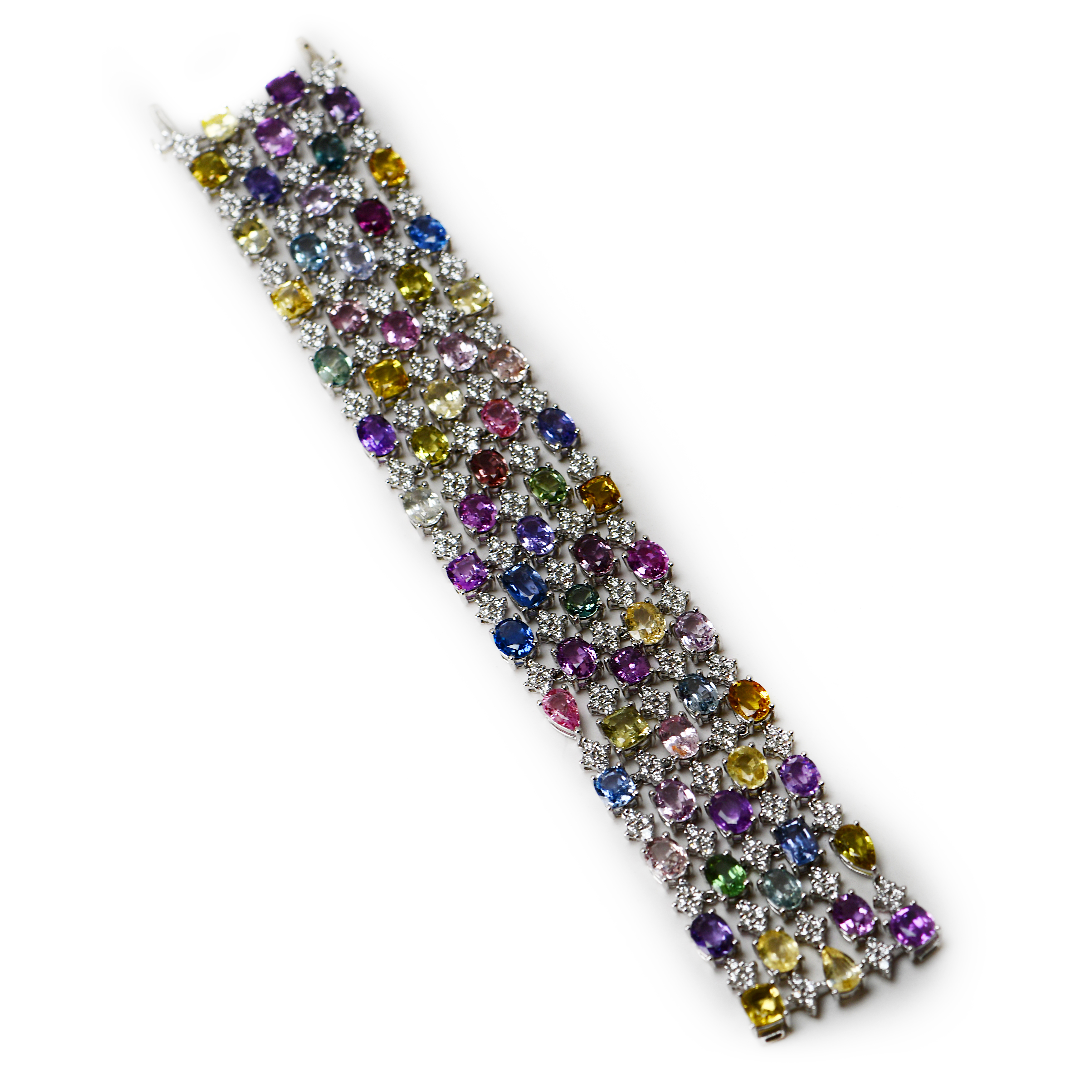 68.67ct Natural Colored Sapphire Bracelet on 18k White Gold