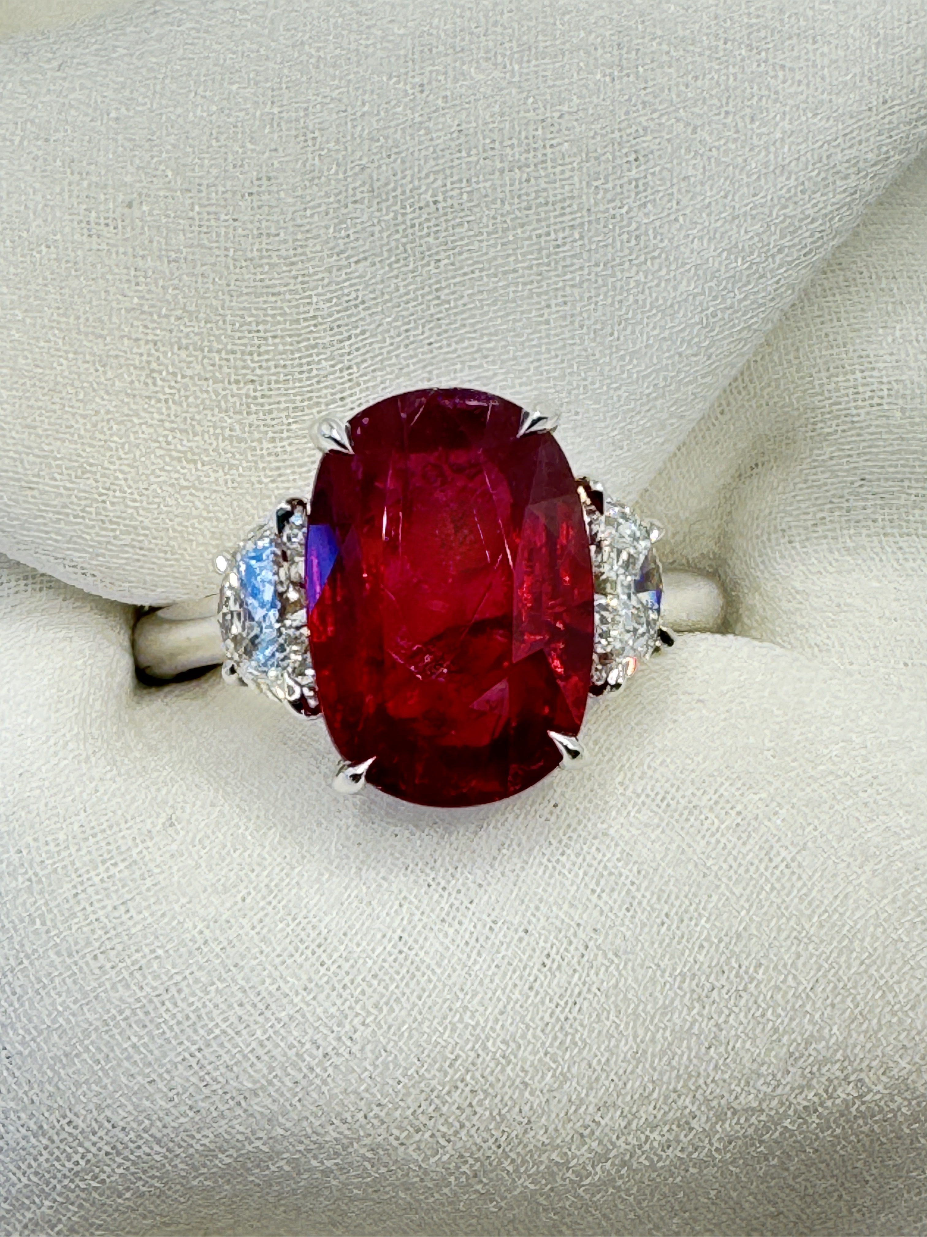 4.97ct Cushion Burmese Ruby Ring
