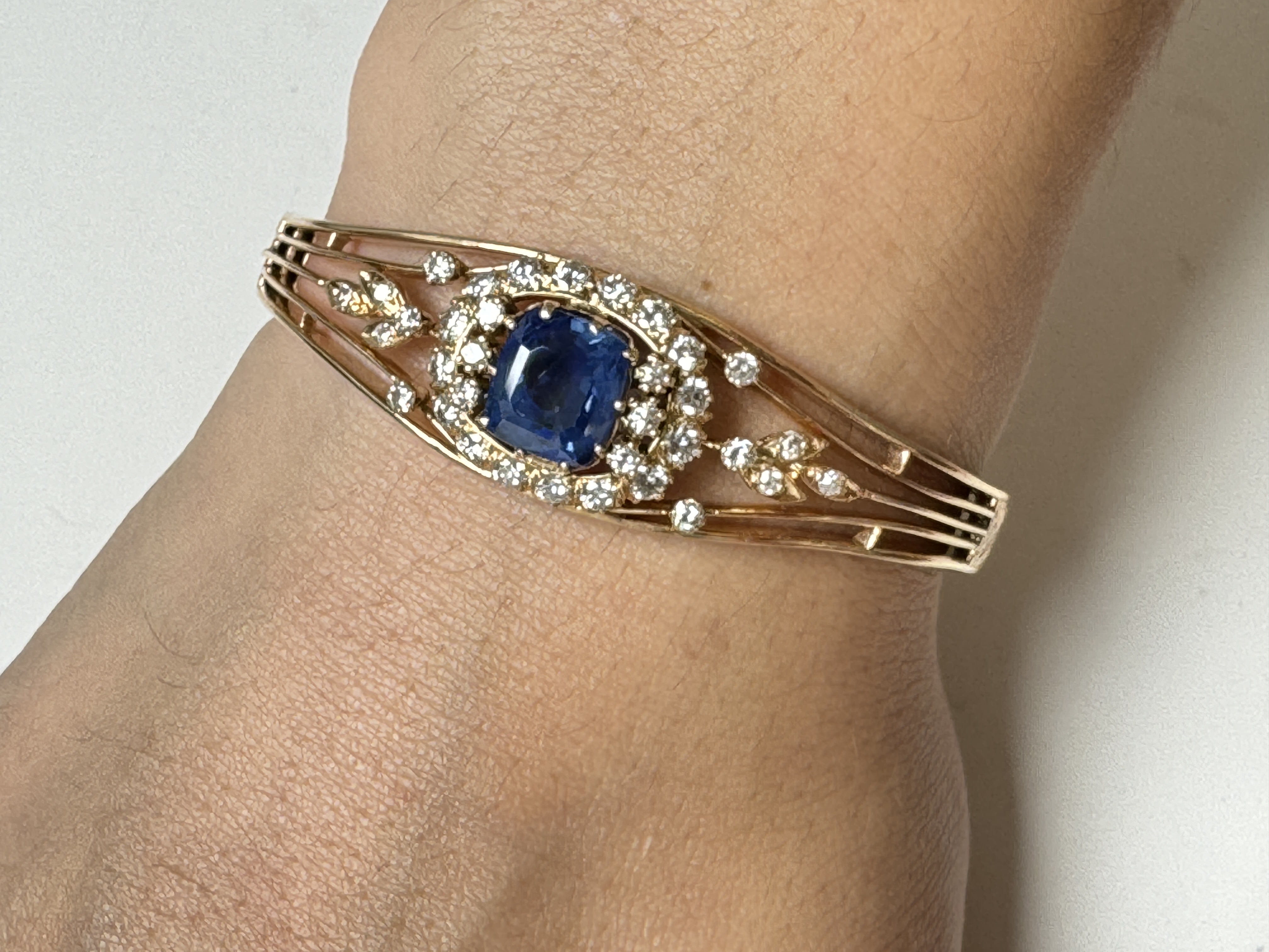 Treasure of Timeless Elegance: Lovely Sapphire and Diamond Edwardian Yellow Gold Bangle