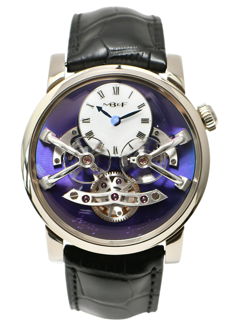 In 2023, MB&F brings back a beautiful new edition of its LMX timepiece, featuring a stunning purple dial plate encased in a complementary white gold case. The LMX Paris Edition will be exclusively available at the Parisian MB&F LAB on Rue Saint-Honoré and limited to 15 pieces.