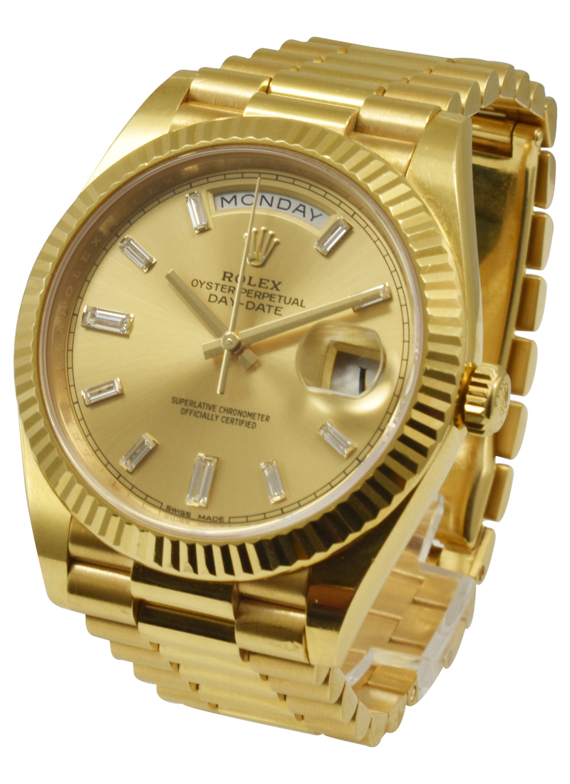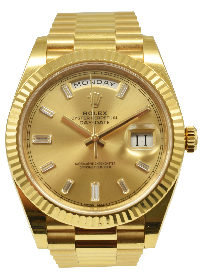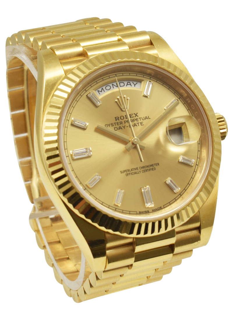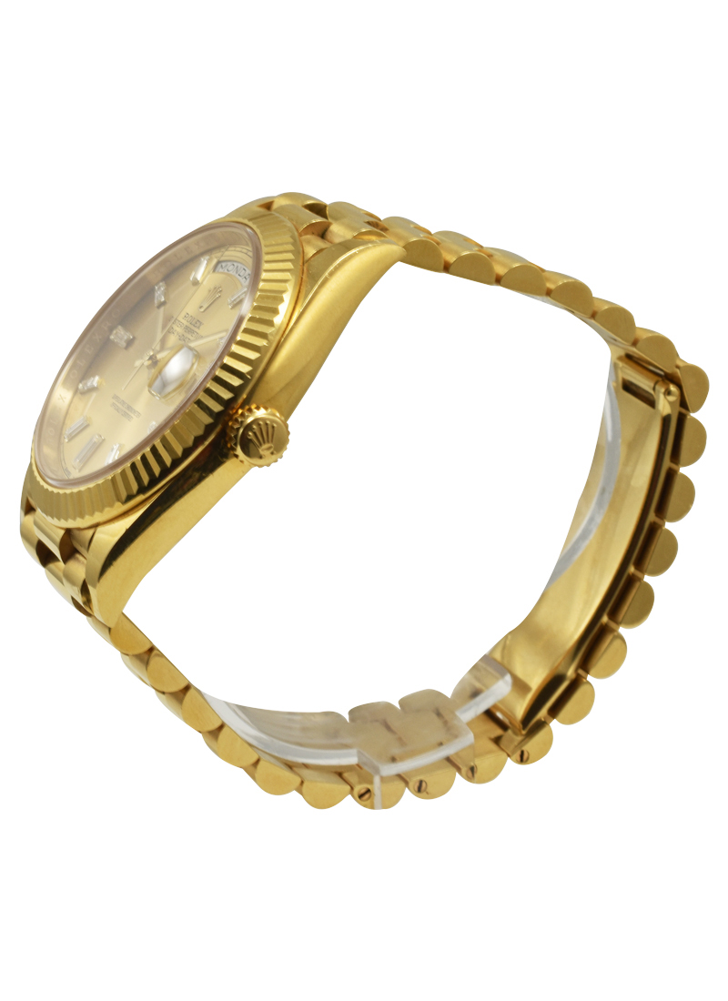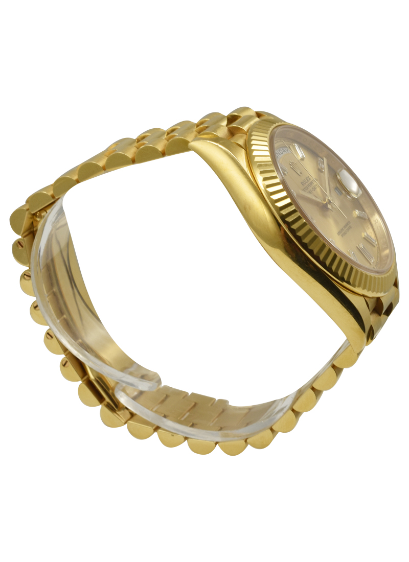 on Yellow Gold Bracelet with Champagne Dial and Baguette Markers