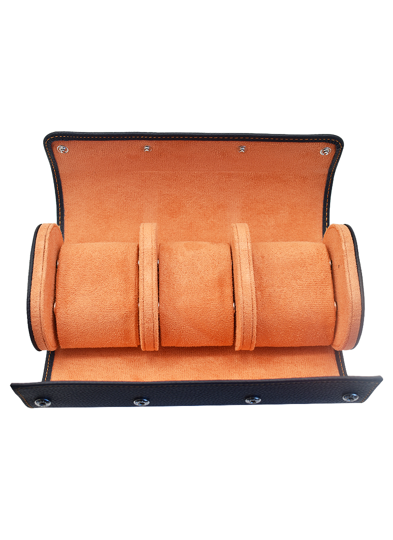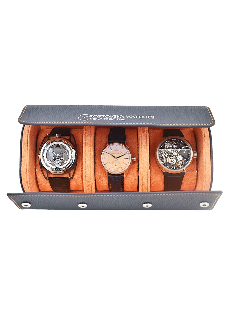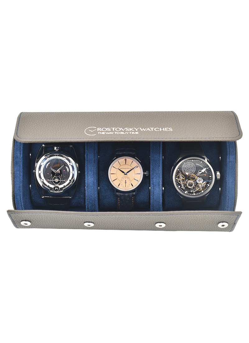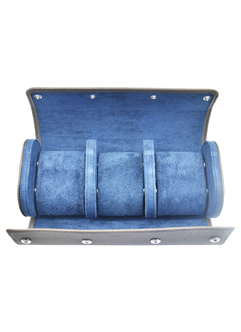 Leather Watch Roll for Three Watches in Grey Leather